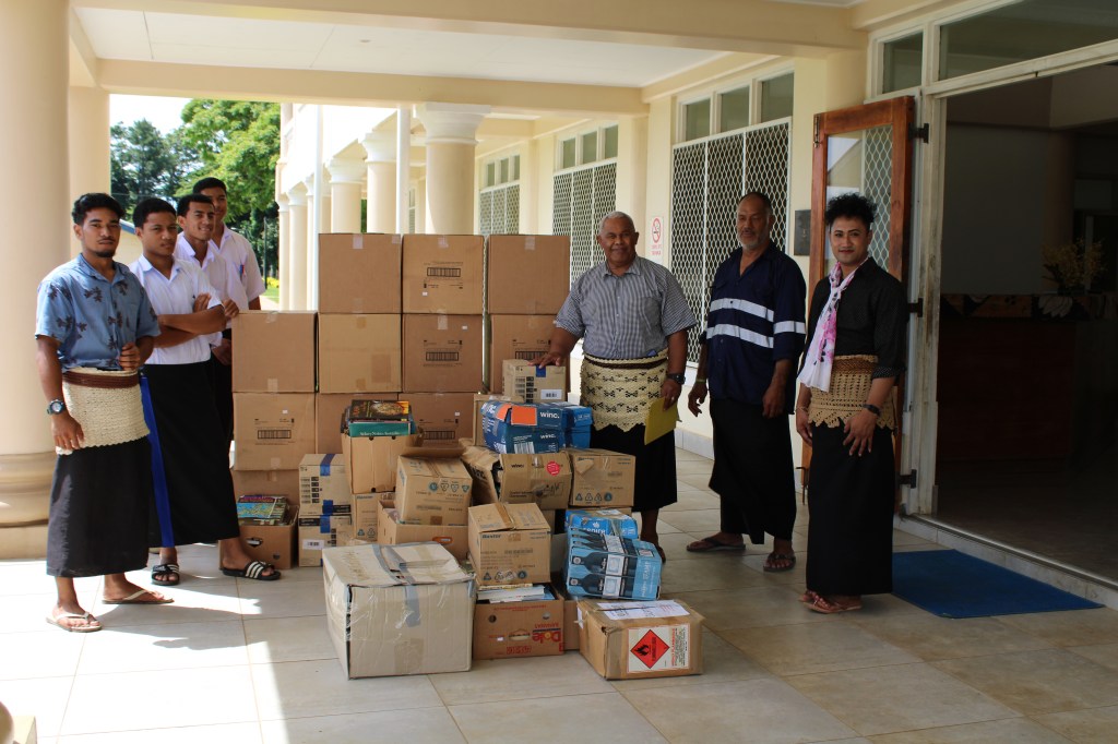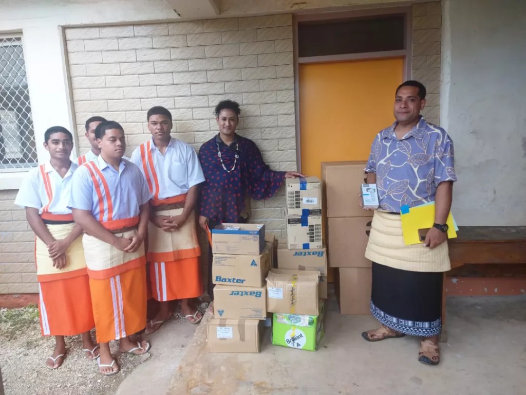 Her Majesty was pleased to direct the medical supplies be distributed to Vaiola Hospital, High Schools and Colleges with Health Clinics namely, Tupou College, Tonga College, Queen Salote College and Tonga High School.